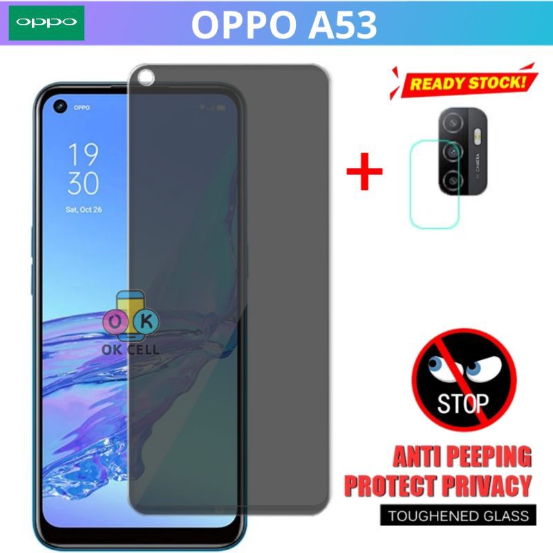 2in1 Tempered Glass Anti Spy Oppo A53 Tg Anti Gores Layar Camera Privacy Screen Protector Premium Shopee Indonesia